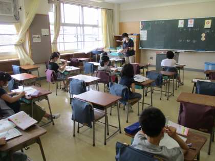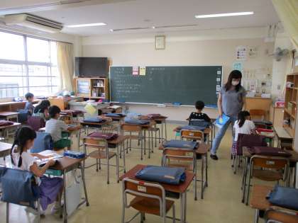 2回目の分散登校となった6日目、2年生Aグループの子どもたちが午前に登校しました。これから育てる野菜の種の観察では、虫眼鏡を使ってじっくりと種の様子をワークシートに描き、新しい漢字の学習では丁寧に字を書いて覚えようとしていました。友達が周りにいることで、お互いによい刺激を受けていることがうかがえます。