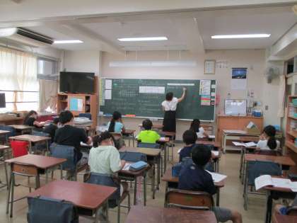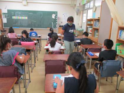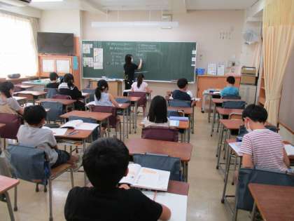 2回目の登校となる4年生Aグループの子どもたちは、算数では「大きな数」の学習について復習し、社会科の「安全なくらしとまちづくり」では、交通事故を防ぐための警察や地域の人の工夫について考えたりしました。