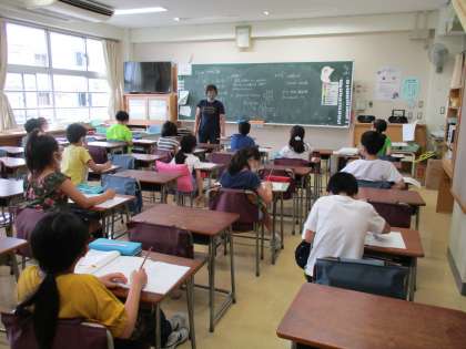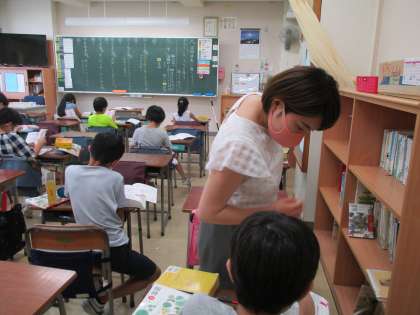 4年生は、算数で単元の復習問題に取り組んだり、日記を書いたりしました。国語辞典を使った学習では、素早く言葉を探しては、ノートに意味を書き写していました。