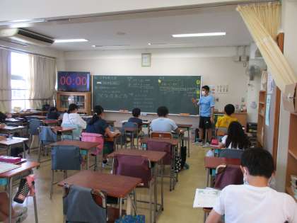 6年生は国語で話し言葉と書き言葉の使い分けについて考えています。メリットとデメリットを出したり、書き言葉と話し言葉での文章表現に取り組んでいます。算数では文字を使って式を立てるのはどのような場合かを考えて、実際の問題で答えを求めています。