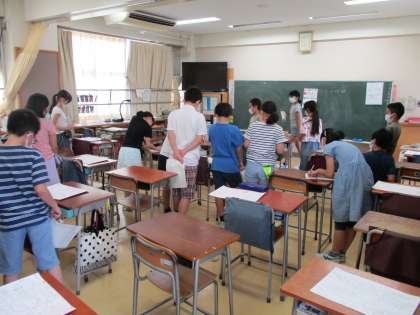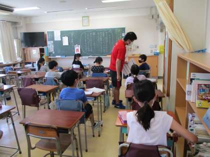 健康観察表を担任の先生にチェックしてもらうことから、5年生の学校生活は始まります。毎日の検温にご協力いただきありがとうございます。
