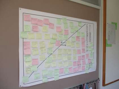 AグループからBグループへ、BグループからAグループへと同じクラスのまだ会えていない友達へのメッセージが増え、掲示板の空きスペースがなくなってきました。もうすぐ全員で一緒に学習できる日がやってきます。お互いのメッセージは、きっと相手の心に届いていると思います。