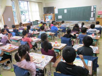 1年生にとっては初めての給食、他の学年にとっては、約4か月ぶりの給食です。今年から牛乳は紙パックに入ったものになりました。ストローをさす場所がうまく見つけられなかったり、飲み終わった後潰すのに時間がかかったりと、一つ一つ解決しながらでしたが、「おいしかった!」と給食を喜んで食べたことが何よりでした。