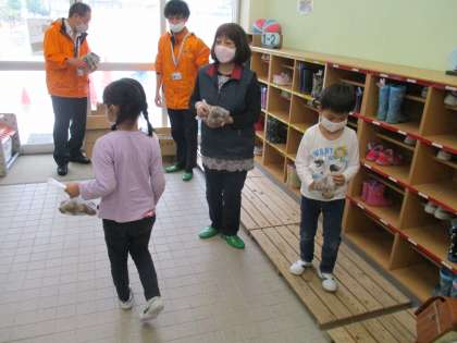コロナウイルスのため、39回目となる今年度の「じゃがいも掘り会」に子どもたちが参加することはできませんでしたが、青少年松原地区委員や地区委員、松原小の校外地域委員の皆様が、子どもたちのためにじゃがいもを掘り、袋詰めして、新1年生に入学のお祝いとしてに配ってくださいました。本当にありがとうございます。