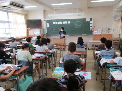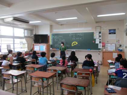 算数少人数での指導も始まりました。4年生は3クラスを4つの展開に分けて、4人の先生が教えます。分度器での正しい角度の測り方をマスターするために、手順を何度も確認してから、練習問題に各自取り組みました。