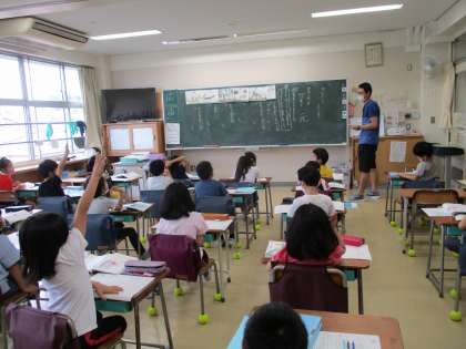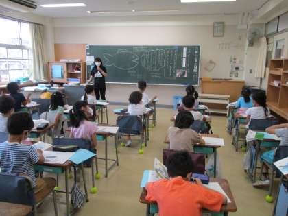 2年生が物語文「スイミー」の読み取り学習で、マグロに襲われた場面やスイミーがひとりぼっちになった場面のスイミーの気持ちを考えています。スイミーになったつもりでひとりぼっちになったとき、見た景色をどのように感じたか、言葉で表現しています。友達の言葉を聞いて「そうそう」や「そう言いたかった」などと共感することが、読み取りでの理解を深めています。