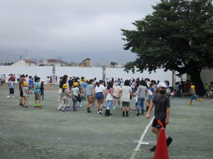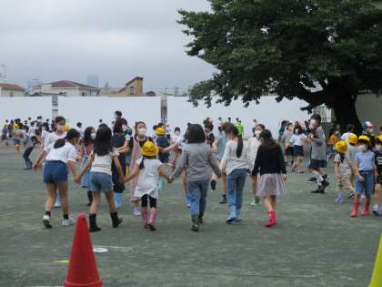 5年生の中に1年生が入っての「はないちもんめ」が始まりました。最初は一人でしたが、だんだんと1年生が増えていき、いつの間にか先生も一緒になっての遊びになりました。