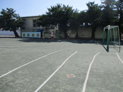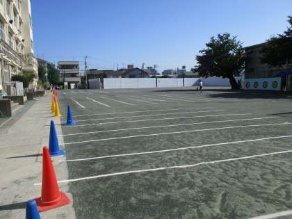 昨日の天気と打って変わって、青空になりました。今日は気温も上がって暑くなりそうです。毎朝校庭にラインを引いて、子どもたちを迎える準備をしています。