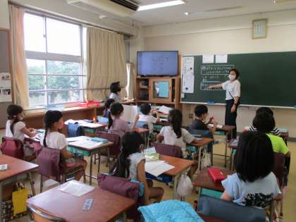 わり算の学習で、「〜の何倍」という言い方を学び、今までの学んできたこととどのようにつながっているかを考えています。また、60÷3の計算の仕方を考えて、自分の考えた答えの出し方を友達に説明しています。