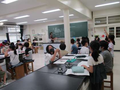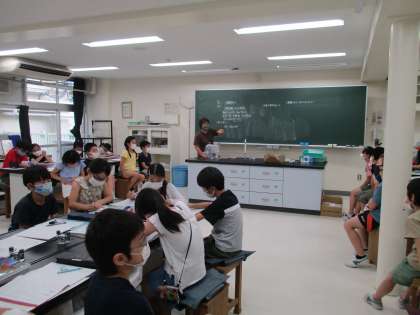 「空気と水」の学習で「注射器に水と空気を半分ずつ入れ、キャップをして手でピストンを押すと、水と空気はどうなるか」について、実験前の自分の予想を発表しています。実験をこの後行って、確かめました。
