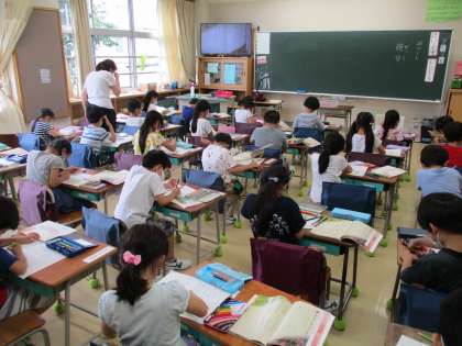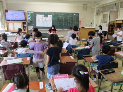 他のクラスではひらがなの学習のワークシートを返され、「はなまる」をもらったことを喜ぶ様子が見られました。
