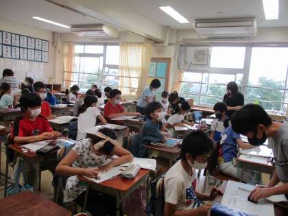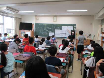 隣のクラスでは、「聖武天皇はどのようにして世の中を治めようとしたか」について、小グループで各自が考えたことを話し合い、ホワイトボードにまとめました。そのあと、クラス全体でお互いの考えを共有して、その中からキーワードを拾い出しています。次の時間にさらにキーワードについて考えることになりました。