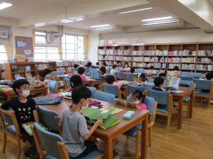 図書室での図書の時間は、本のページをめくる音しか聞こえません。自分の選んだ本を静かに読んでいます。