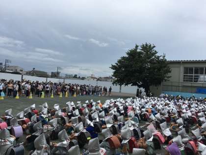 大地震を想定した、引き渡し訓練を行いました。速やかに、クラスごと避難することができました。