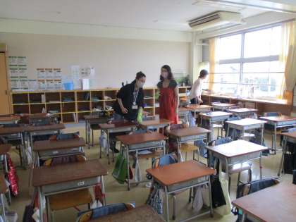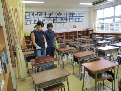 今日も夕方保護者の方のご協力をいただき、校内の消毒を行いました。