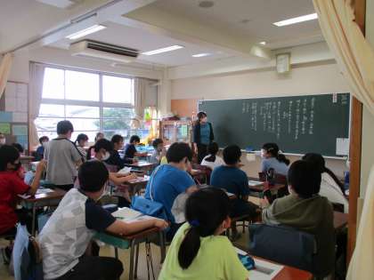クラス目標について、以前に話し合った時の黒板の写真を見ながら、最終段階に向けた話し合いをしています。入れたい言葉が入った目標の言葉を、覚えておくためにどのように表記するか、略したものがよいか、そのままがよいか、一人ひとりの意見を大切にしながら話し合っています。