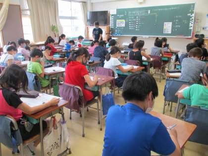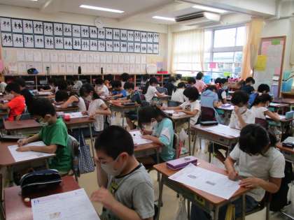 4年生のクラスも、テストを受けています。どちらのクラスもとても静かで、テスト用紙に鉛筆を走らせる音しか聞こえません。