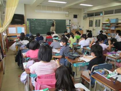 他のクラスでは、漢字テストが始まるので、ドリルで直前のおさらいをしています。
