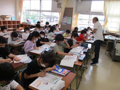 学期末が近づいているので、まとめの学習に取り組んでいます。問題の答えを教科書に書き込んだり、ノートに解いたりしています。