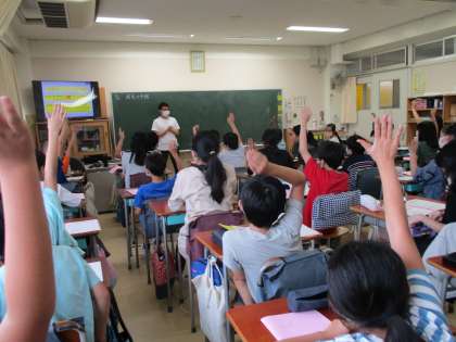 「病気の予防」の学習をしています。どのようにすればインフルエンザなどの病気にかからないか、まずはクイズで知識を確認しています。感染症の予防にも役立つ大切な学習です。
