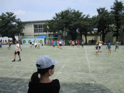 久しぶりに日差しの中、休み時間を過ごしています。少し走ると汗ばむ暑さですので、早めの水分補給を呼び掛けていきます。