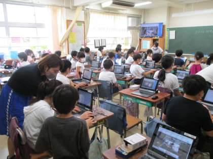 授業での活用や第2波に備えて、ロイロノートの使い方を覚えています。ログインするにも、全角と半角の入力を切り替えるなど、手順が多く、全員が同時にスムーズに行えるようになるには、繰り返し取り組むことが必要です。