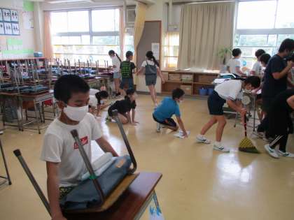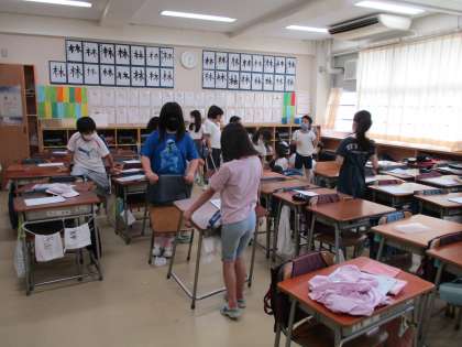 4年生の教室も先生と一緒にどんどん机を運んで教室をきれいにしていっています。