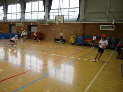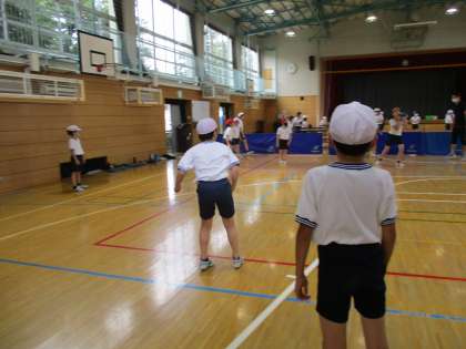 体育館では屋内球技クラブが卓球クラブと体育館を仕切って活動をしています。屋内球技クラブのドッジボールは、コートが狭い分、ボールのやり取りのスピードが速く、うまく避けるのにも技術が要ります。