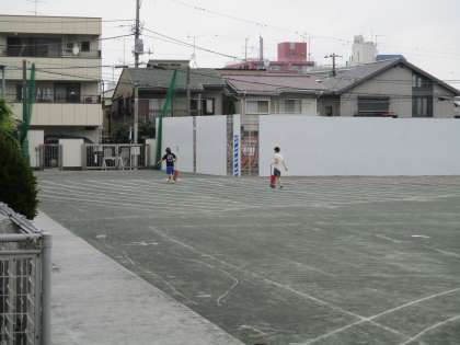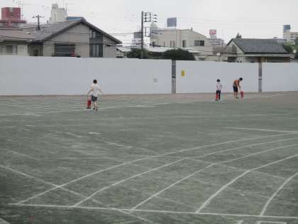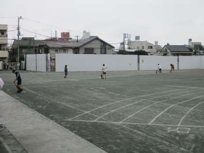 今日もスポーツテストのソフトボール投げの測定をするので、子どもたちの登校前に昨日のラインの薄くなったところを引き直しています。