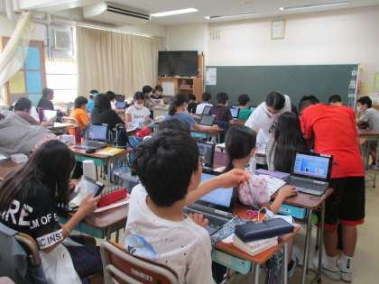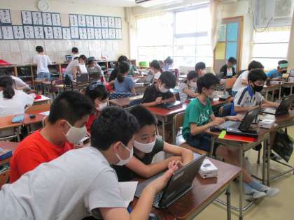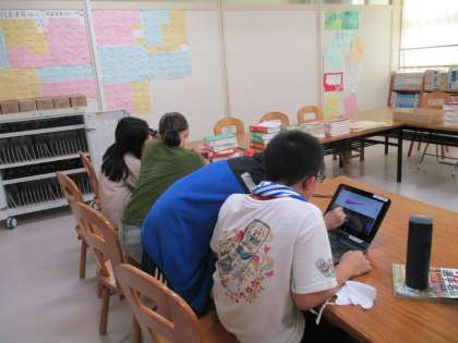 平安時代について、班ごとに調べたことをプレゼンテーションにまとめています。発表の時間が近づいてきて、仕上げの段階に差し掛かってきています。