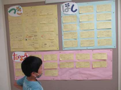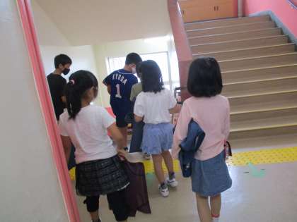 今年度初めての「なかよしタイム」では、1年生から6年生までの縦割り班での交流をしました。月、星、太陽それぞれが14班で構成され、全校合わせると42班編成となります。1教室を2班ずつで分けて使い、自己紹介をした後は、6年生が考えてきてくれた室内遊びで同じ班の人との親睦を深めました。