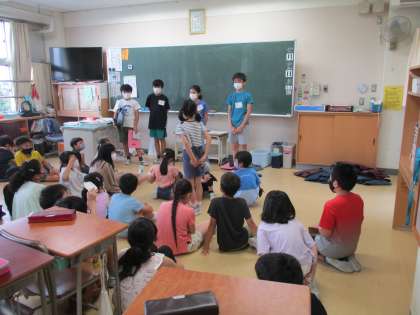 活動の最後には、班ごとに振り返りをしました。異なる学年の人の前でも自分の感想をしっかりと伝えられることは素晴らしいです。