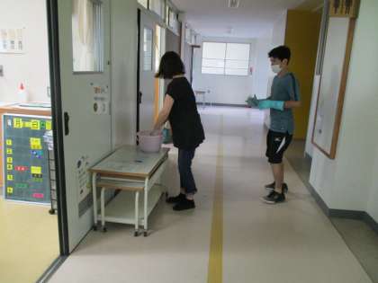 毎日保護者の方のご協力をいただいて、消毒作業を続けています。ご協力ありがとうございます。