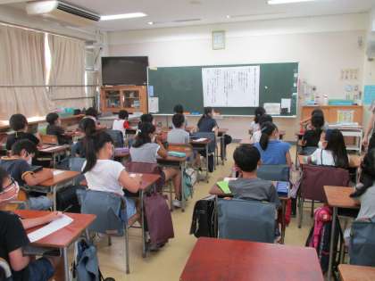 漢字を使ったお話リレーに取り組んでいます。はじめ、中、終わりのどの部分の担当になりたいか決めて、その部分のみを記入するワークシートを受け取りました。1学期に使用したドリルを見ながら、できるだけ多くの3年生までに習った漢字を使って、お話を作っていきます。最後に組み合わせた時、どんなストーリーが生まれるでしょうか。