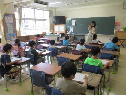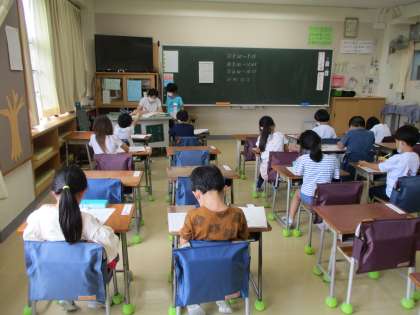 全部の問題を解き終わると、先生のところに行って採点をしてもらったり、次々と先生が言う答えと自分の答えが合っているかを確認したりしています。