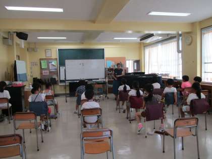 音楽では、「タンギング」をしながらのリコーダー演奏に挑戦しています。鍵盤ハーモニカでもタンギングをしていたので、あちこちから「トゥー、トゥー」と舌を使って吹くときの口の動きを確認する声が聞こえます。