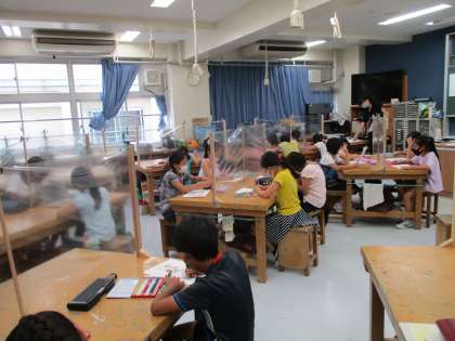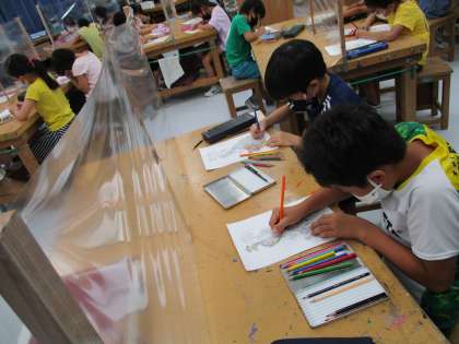 図工ではグラデーションやハッチングを取り入れながら、色鉛筆画に取り組みました。楽しんで色を選んで塗っている様子が見られました。