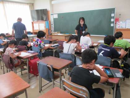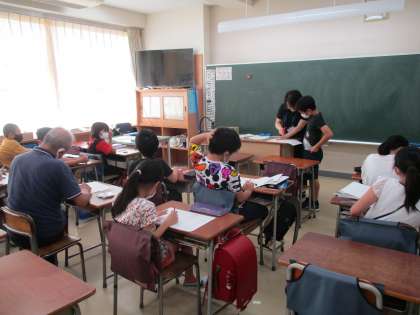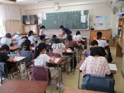 算数では、2けたのわり算の復習問題に取り組みました。個別に分からないところを質問したり、声を掛けて一緒に解いたりしています。