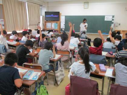 社会科では、地図帳マスターを目指して、索引で調べる活動に取り組みました。特徴ある名前の空港の場所を探しました。ページやそのページのどの部分にあるまでは分かっていても、最後のその地名の書かれた文字を見つけるまでには時間がかかることがあり、見つかると「あー、あった。あった。」との声が出ていました。