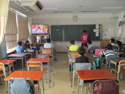 理科では、「人と動物の体」の学習で、自分たちの脈拍数を調べた後、テレビを見て血管の中を赤血球や白血球が流れる様子を見たり、放送から分かったことをノートに書いたりしていました。