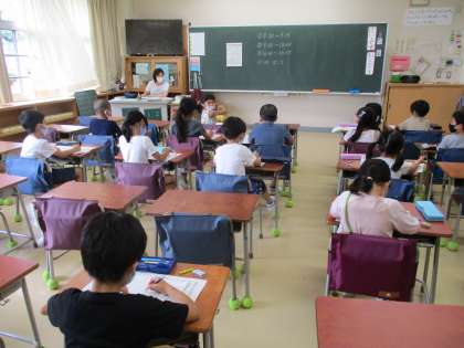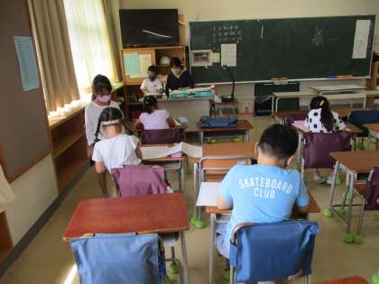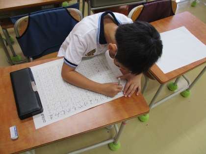 国語では、「ひらがなのれんしゅう」に取り組みました。一文字一文字、じっくりと字形に気を付けて書いているので、ワークシートにはとても上手な文字が並んでいます。