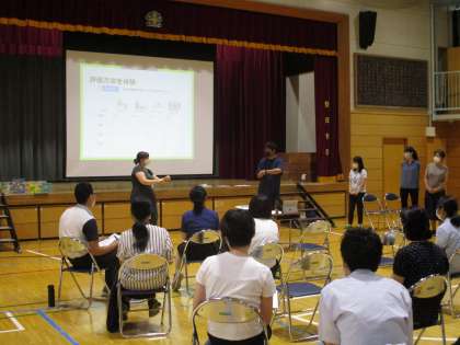 子どもたちが下校した後は、外国語科や外国語活動の指導技術を高めるための研修をしました。