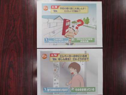 放送にて、朝会を行いました。校長先生からは、防災意識についてクイズを交えながらお話がありました。当たり前の生活を奪う、災害(地震、台風、感染症など)は日常だけでなく、命を奪っていくこともあります。いざというときに命を守る行動が取れるよう、訓練したり準備したりしておくことが大事です。