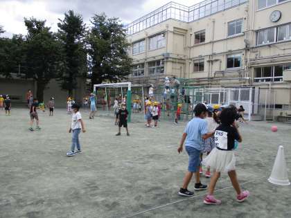 今日も蒸し暑い日ですが、曇っている分少し暑さが和らいでいます。引き続き学年により、場所を分けての中休みです。