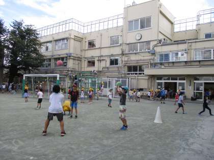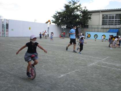 今日は湿度が高く、暑い日ですが、元気に外遊びをしています。