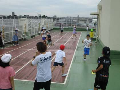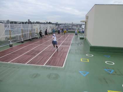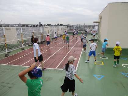 今週は3年生の割り当て場所は屋上です。第一屋上で鬼ごっこをしています。早めのチャイムが鳴り、いったん室内に戻りましたが、もう10分遊んでよいとの放送が入りました。「キャー」とたくさんの聞き取れないほどの歓声が上がって、再度屋上で遊びました。
