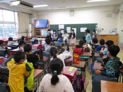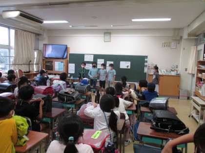 係からの連絡を伝えています。連絡の内容には、クラスのみんなへのお願いもありました。