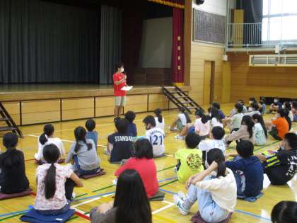 担任の先生方からも頑張ったこと、乗り越えたこと、素晴らしさを感じたところなど、運動会を経て成長した姿を褒める言葉がたくさん伝えられました。取り組みを始める前と比べて、集団としての高まりを感じさせる雰囲気が漂うようになり、話を聞く態度も明らかに前とは違い、大きく一段階段を上ったことが感じられました。