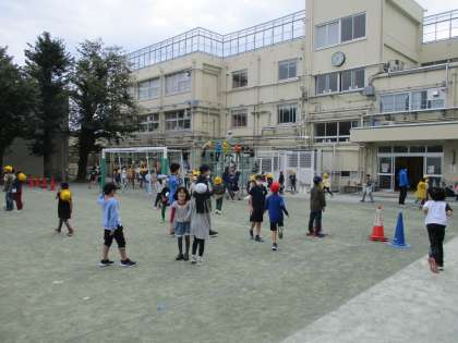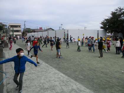 今週から校庭に工事用の通路や体育館へ渡る渡り廊下の設置が始まりました。固定遊具で遊べるのはこの20分休みまでです。