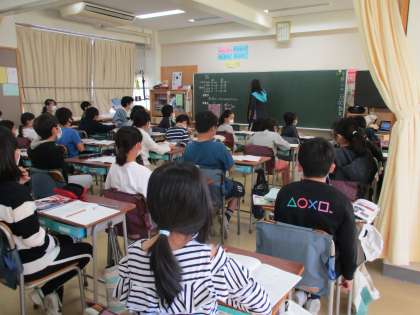 雲の動きにきまりがあるかどうかを考えています。まずはきまりが「ある・ない」の意思表示をして、それぞれどうしてそう思うかを発表していきます。友達の考えを聞きながら「なるほど」や「そうか」というつぶやきが聞こえます。友達への説明の言葉が伝わりづらい時に、すかさず「大丈夫。もう一回言って。」や「ちゃんと聞こう。」と呼びかける子どもたちがいます。友達の考えを聞いて、さらに考えることも大切ですが、安心して自分の意見を言えるクラスの雰囲気を保とうとすることは、もっと大切なことです。それができている姿を見ることができました。